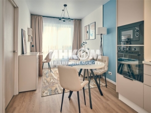 Сдается 2-комнатная квартира. Сдается ВПЕРВЫЕ. Стильная квартира. Свежий дизайнерский ремонт. Встроенный кухонный гарнитур со всей бытовой техникой. Обеденная группа. Диван. Комод. Телевизор. Спальня. Санузел совмещенный. Панорамный вид. Благоустроенный двор.