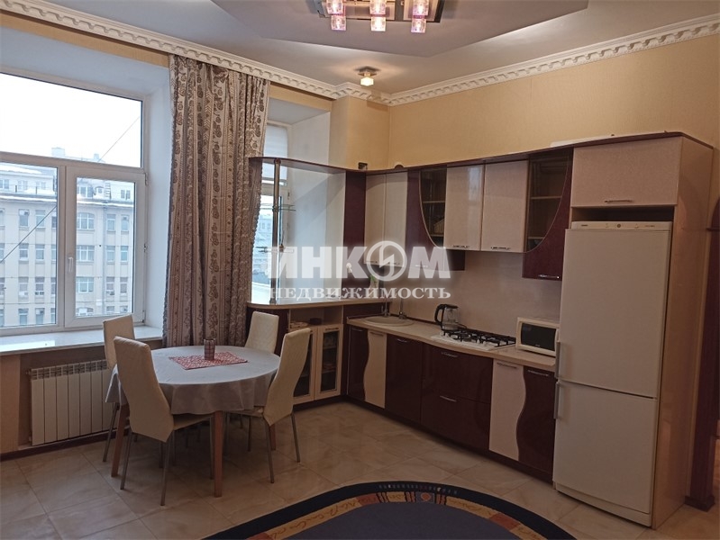 Предложение по аренде квартиры. Сдаётся четырёхкомнатная квартира в отличном состоянии. Великолепная локация в центре города, рядом с тремя станциями метро. Окна на две стороны, в переулок и во двор, тихо. Во дворе м/м для авто, входит в стоимость. Планировка: кухня - столовая 25 кв.м, гостиная 26 кв.м, спальня - кабинет 20 кв.м, спальня 16 кв.м, прихожая 7 кв.м, санузел с окном 12 кв.м. Квартира полностью меблирована и укомплектована бытовой техникой. Кондиционеры. Потолки 3,5 м.