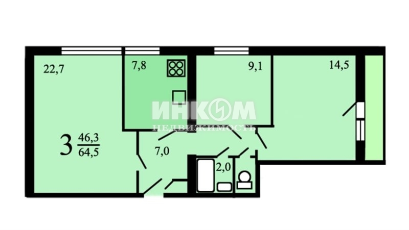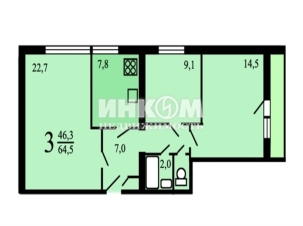 3-комнатная квартира, 10 этаж, 65 м2