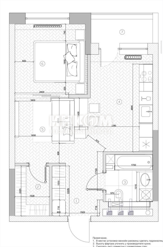 + обозначение смежных комнат