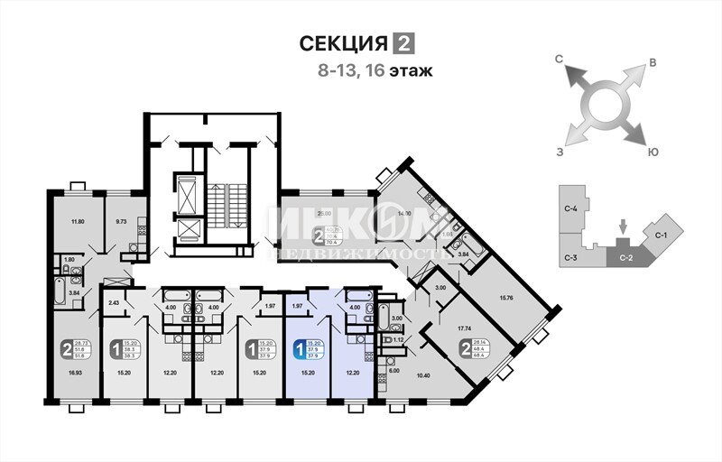 Продажа 1-комнатной квартиры, 37.9 м², этаж 13/16