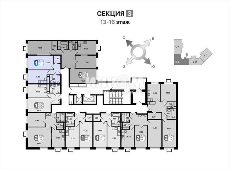 Продажа 1-комнатной квартиры, 37.1 м², этаж 16/16