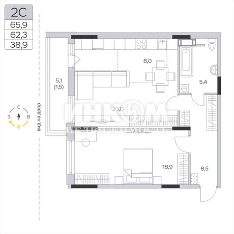 Жилая 38.9 м2
