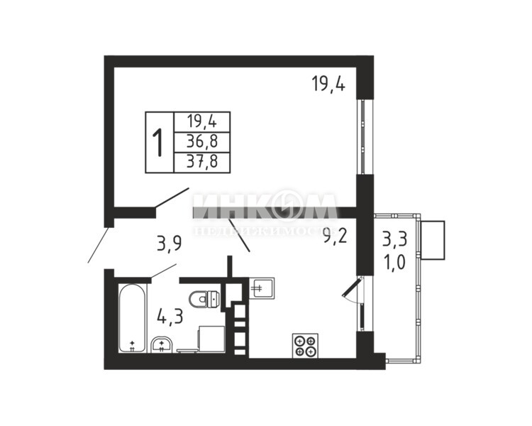 Жилая 19.4 м2