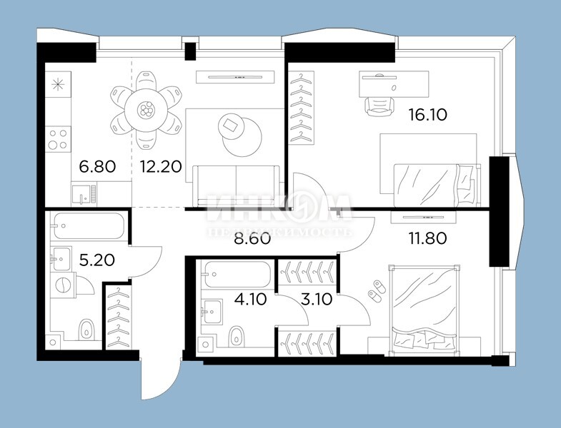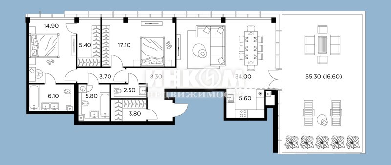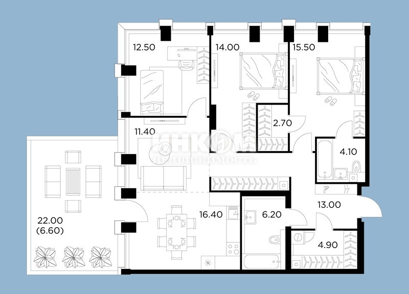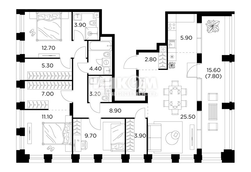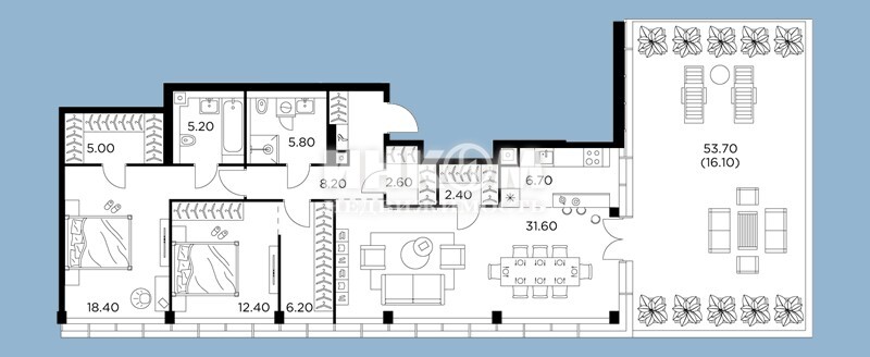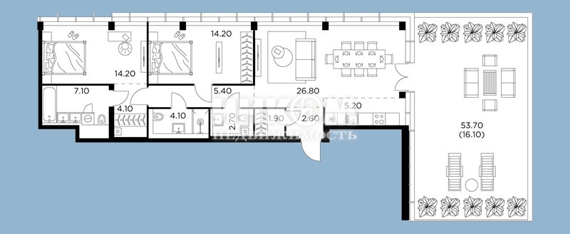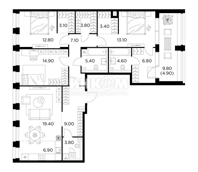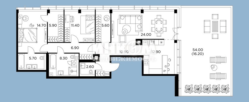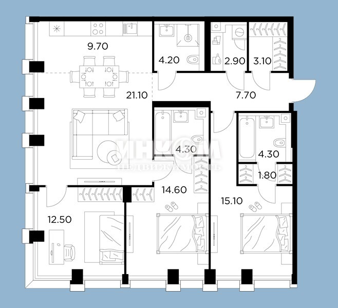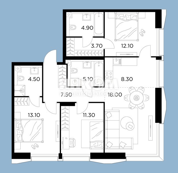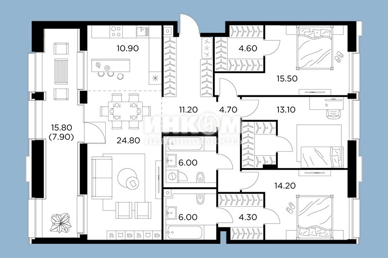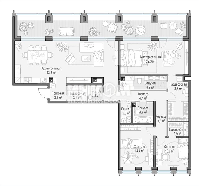 4-комнатная квартира, 10 этаж, 145.7 м2