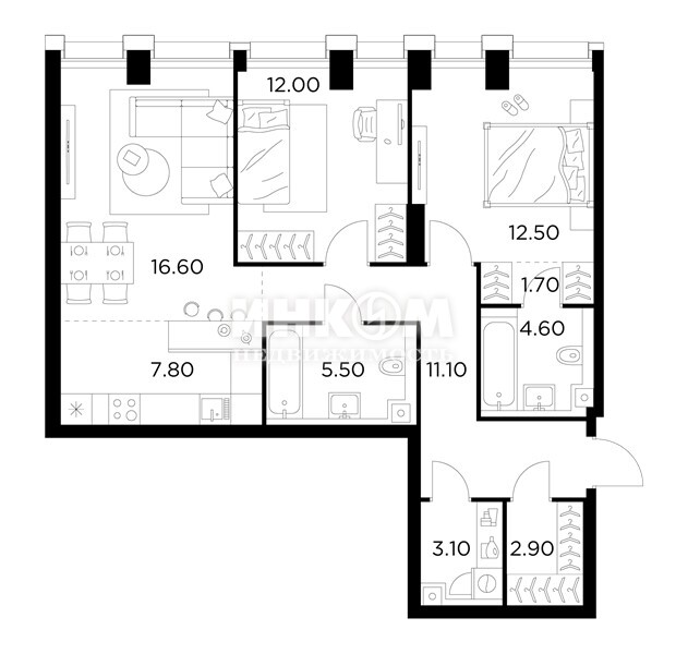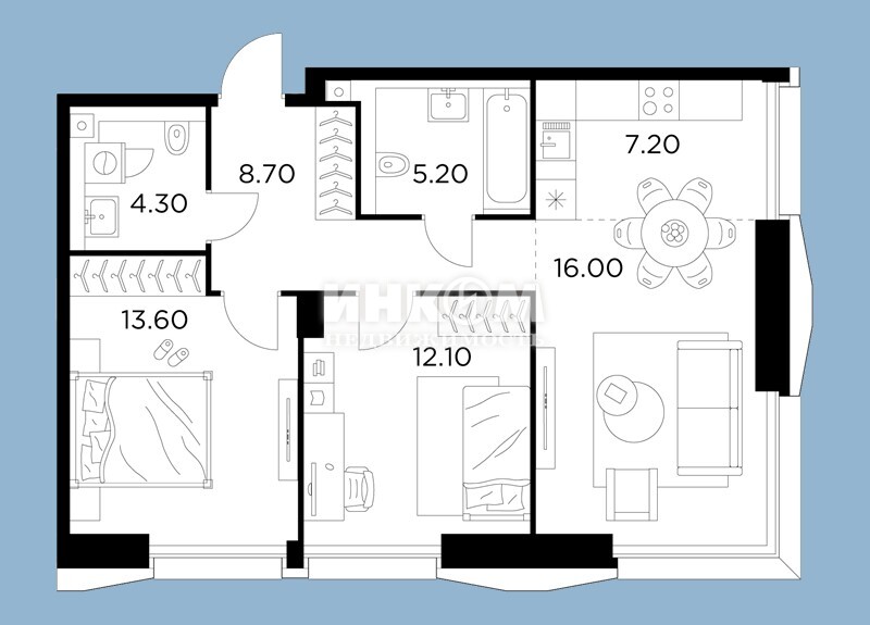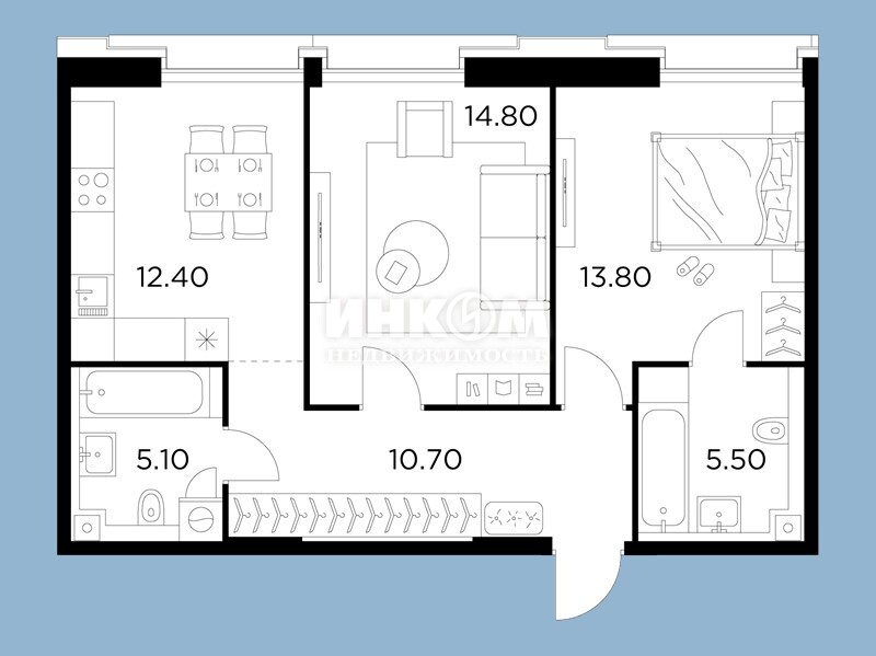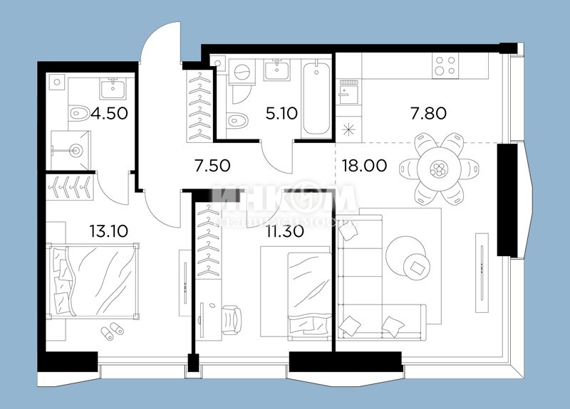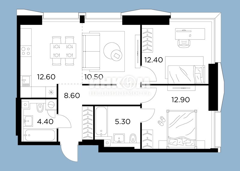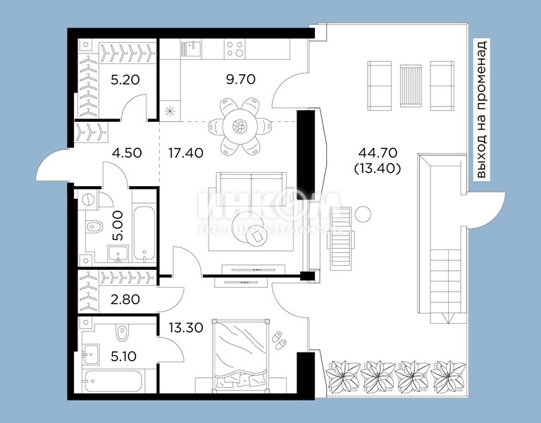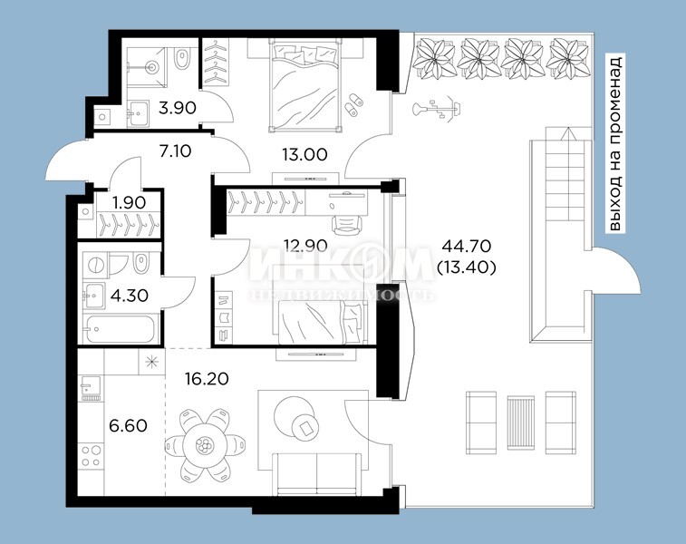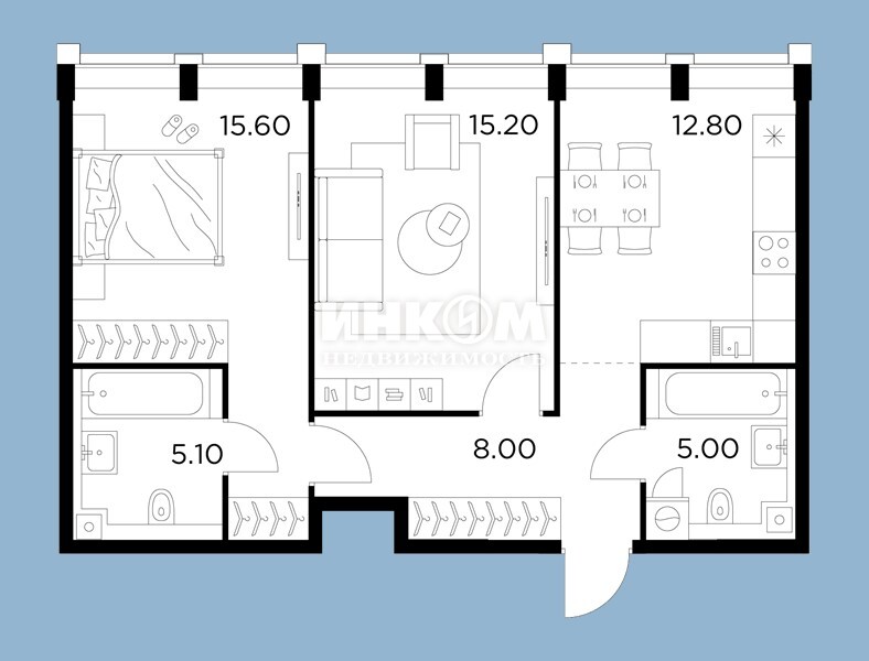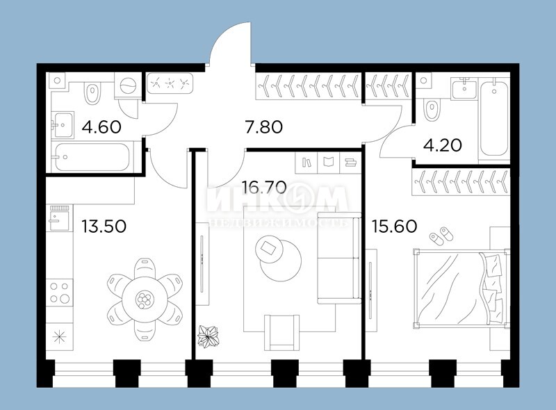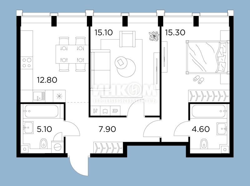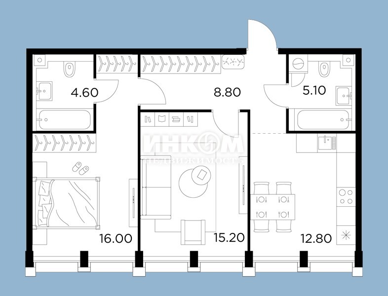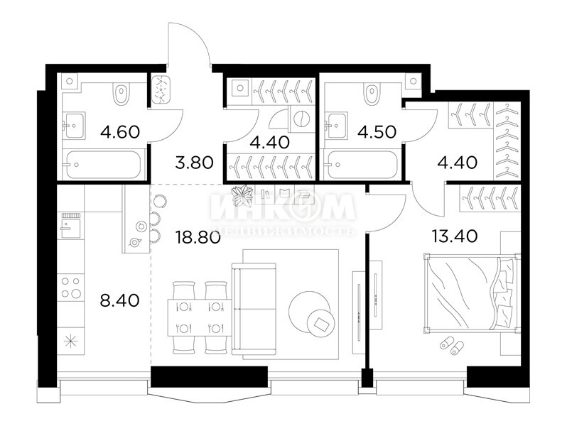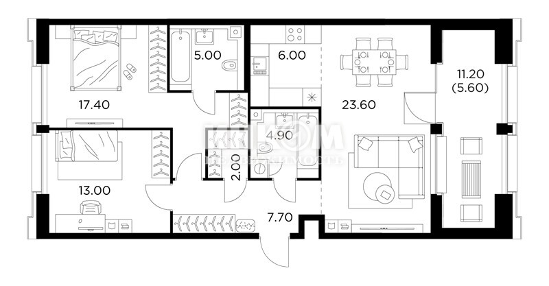 Жилая 75.6 м2