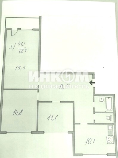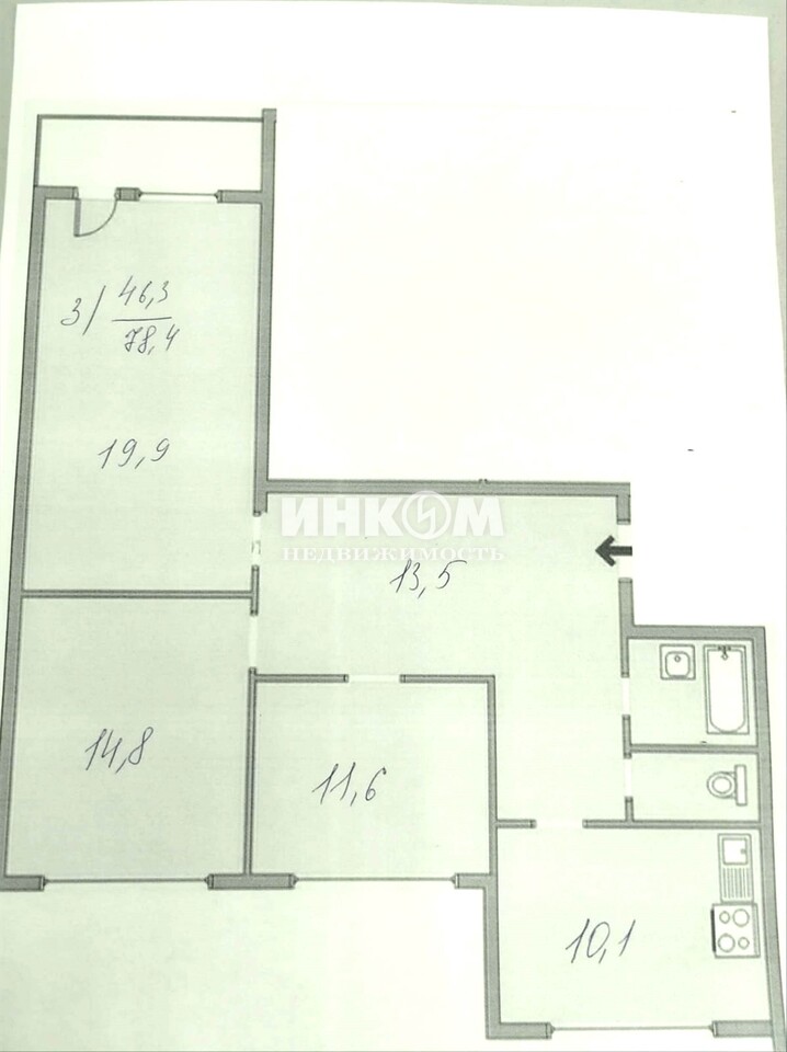 3-комнатная квартира, 6 этаж, 78.4 м2