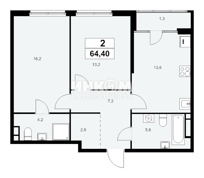 2-комнатная квартира, 11 этаж, 64.4 м2