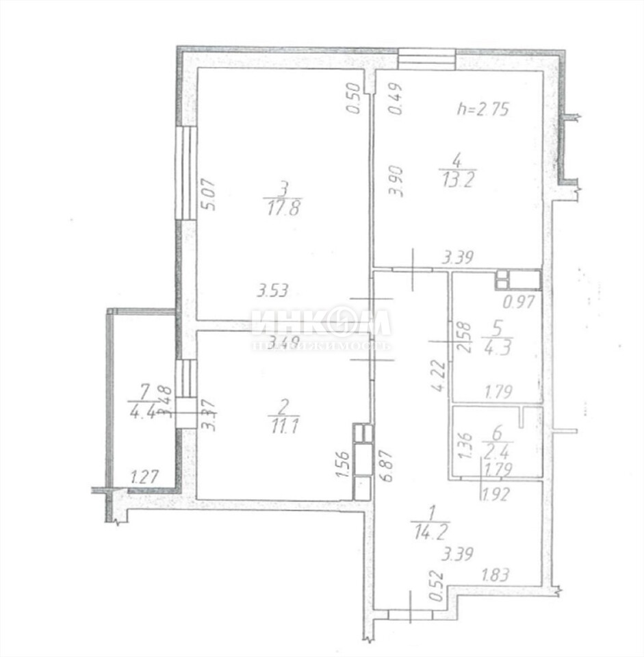 + обозначение смежных комнат