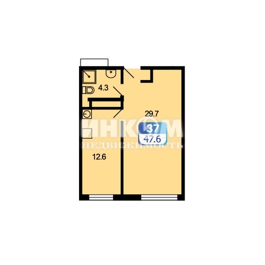 1-комнатная квартира, 4 этаж, 47.6 м2