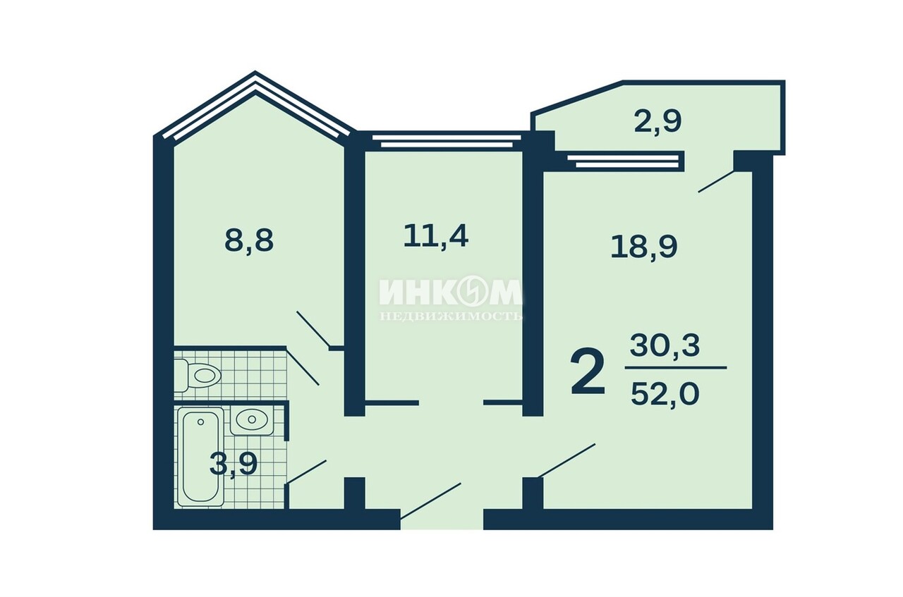 2-комнатная квартира, 3 этаж, 51.8 м2