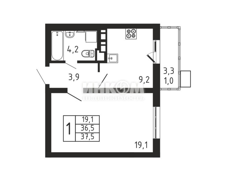 Жилая 19.1 м2