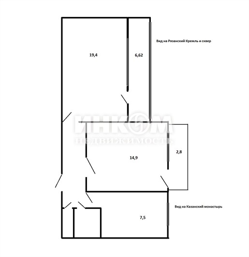 Номер лота: вт-0430763. Центр Рязани, улица Грибоедова! Рядом лучшие места для прогулок и занятий спортом - Рязанский Кремль, ансамбль Почтовой улицы, Лесопарк, Рязанская ВДНХ, пешеходная зона от Кремля до Центрального рынка (в перспективе она продлится до Рощинского парка), Наташин парк! Двухкомнатная квартира на 6 этаже 9-тиэтажного кирпичного дома (дом с магазином "Ткани"). Общая площадь квартиры без лоджии и балкона - 50,9 кв. м. Просторные лоджия (6,62 кв. м) и балкон (2,8 кв. м). Кухня 7,5 кв. м. Очень удобная планировка, изолированные комнаты 19,4 и 14,9 кв. м, санузел раздельный. Квартира не угловая, тёплая и светлая. Хорошие виды из окна на новый сквер, реставрируемый Казанский монастырь и на Рязанский Кремль. Замечательные соседи! Квартира готова к проживанию. В доме прямо сейчас ведётся капитальный ремонт. Развитая инфраструктура. Хорошая транспортная доступность и удобный выезд за город в сторону реки Оки, Солотчи, Касимова и Спасска! Юридически свободна, документы проверены. Три взрослых собственника. Собственность более 10 лет. Альтернатива подобрана.