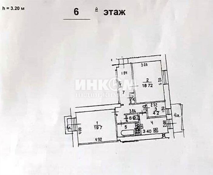 3-комнатная квартира, 6 этаж, 72 м2