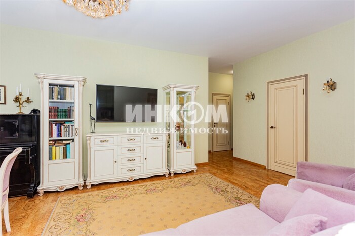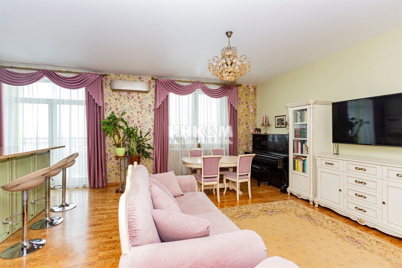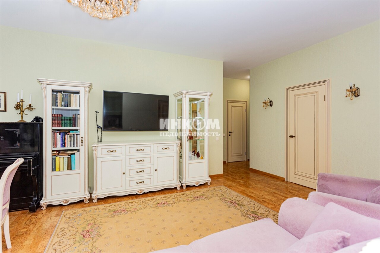Номер лота: вт-0430862. Продаётся просторная 3-ком.кв. с хорошим ремонтом в ЖК комфорт-класса по адресу: Москва, Рублёвское шоссе, 70к7 - ЖК "Крылатский". Район Крылатское - один из самых экологически комфортных районов Запада Москвы. Ближайшая инфраструктура включает в себя Гребной канал, велотрек, гольф-клуб, прогулочные зоны, пляжи Серебряного Бора, ТЦ "Европарк". Ближайшее метро - Крылатское. В пешей доступности детский сад и школа 7 корпус находится в самом хорошем месте жилого комплекса. Квартира удачной планировки. Окна квартиры выходят на две стороны: панорамный вид (этаж 16/23) на лесопарковую зону и тихий благоустроенный двор. Просторная кухня-гостиная с островом, множеством систем хранения Кухонный гарнитур из массива дуба, столешницы из натурального гранита. Два балкона с выходом из кухни-гостиной и спальни. Две детских комнаты. По всей квартире сделана шумоизоляция (стены, пол, потолок) На полу пробковое покрытие производства Швейцарии, что хорошо удерживает тепло.. Гардеробная комната. 2 санузла: ванна с гидромассажем + душевая. Пол - испанская плитка с теплыми полами. Кухонный гарнитур остается новому владельцу. Оперативный показ. Два взрослых собственника. Есть возможность приобретения двух машиномест в подземном паркинге с доступом не выходя из подъезда.