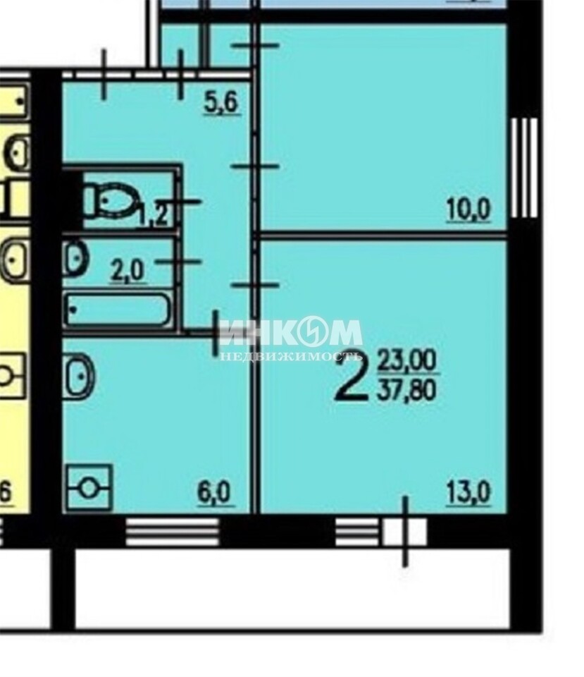 2-комнатная квартира, 8 этаж, 38 м2