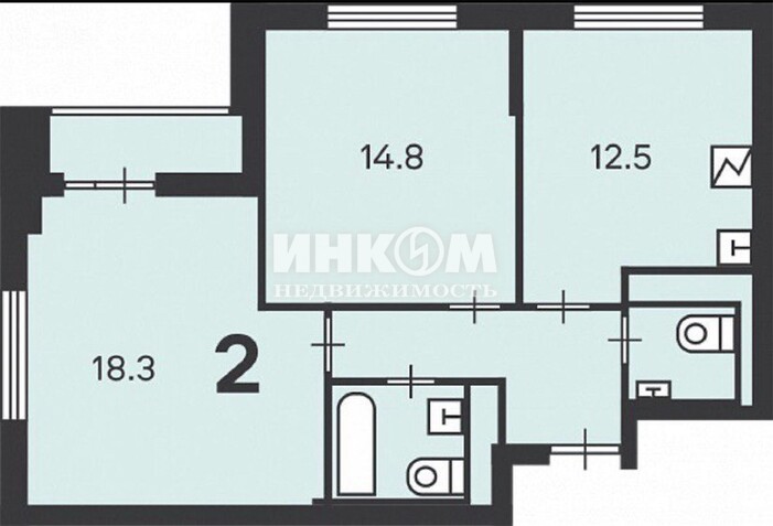 2-комнатная квартира, 16 этаж, 57.2 м2