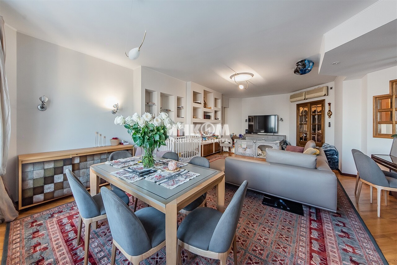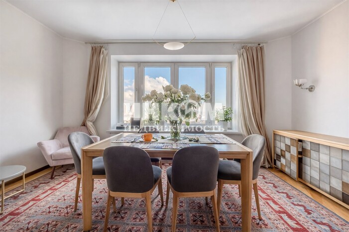 Номер лота: вт-0431464. ЭКСКЛЮЗИВ! В продажу предлагается просторная 4-х комнатная квартира c красивыми видами на Москву. Квартира общей площадью 158 кв. м., включая лоджию и балконы, расположена на 19-ом этаже 19 этажного дома. В квартире выполнен качественный ремонт в классическом стиле: на полу паркет из ценных пород дерева,межкомнатные двери из массива дерева, пластиковые стеклопакеты. Функциональная планировка: большая кухня с обеденной зоной; просторная гостиная; мастер-спальня с собственной ванной комнатой; вторая спальня; кабинет, который при необходимости можно переделать в спальню; гардеробная; 3 санузла, прихожая с гардеробной зоной для хранения верхней одежды. 2 взрослых собственника. Более 5 лет в собственности. Свободная продажа. Быстрый выход на сделку.