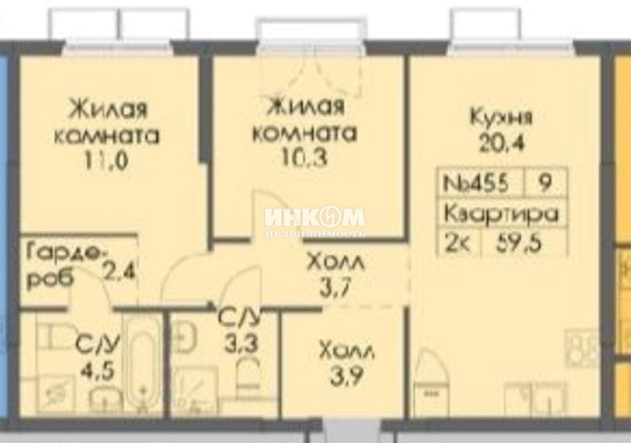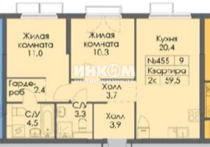 2-комнатная квартира, 5 этаж, 59.2 м2