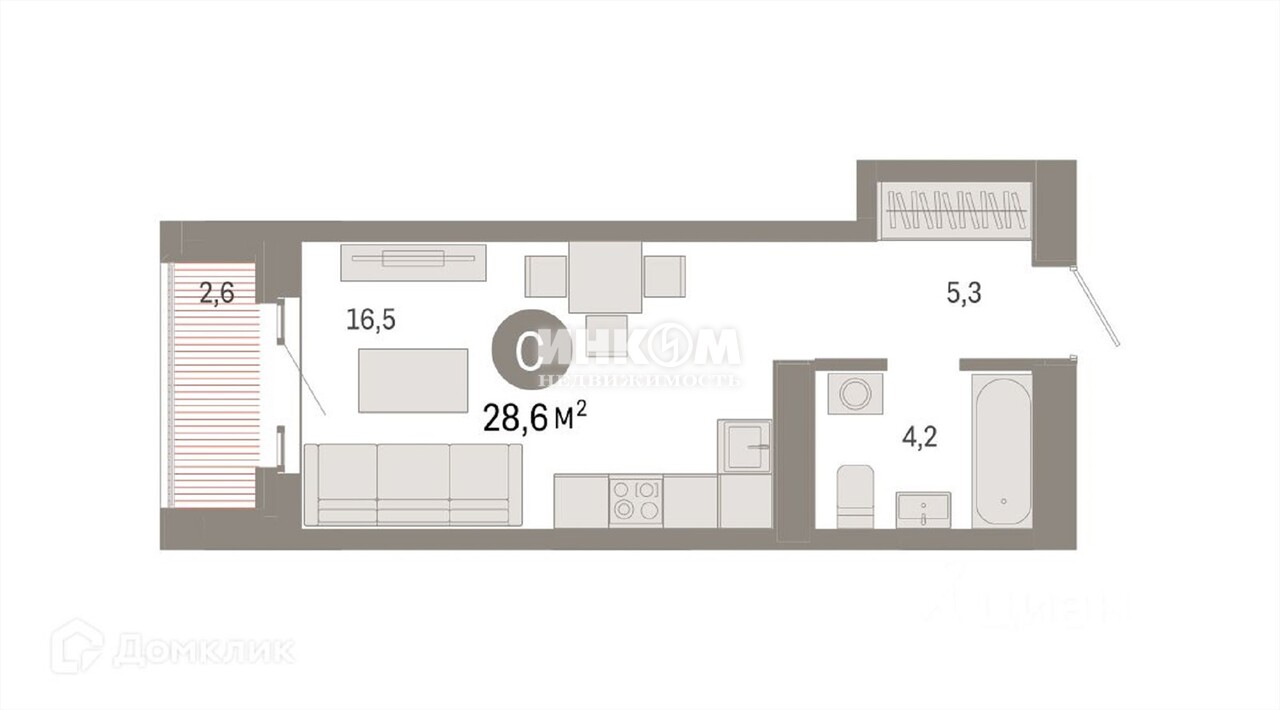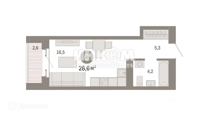 1-комнатная квартира, 9 этаж, 28.6 м2