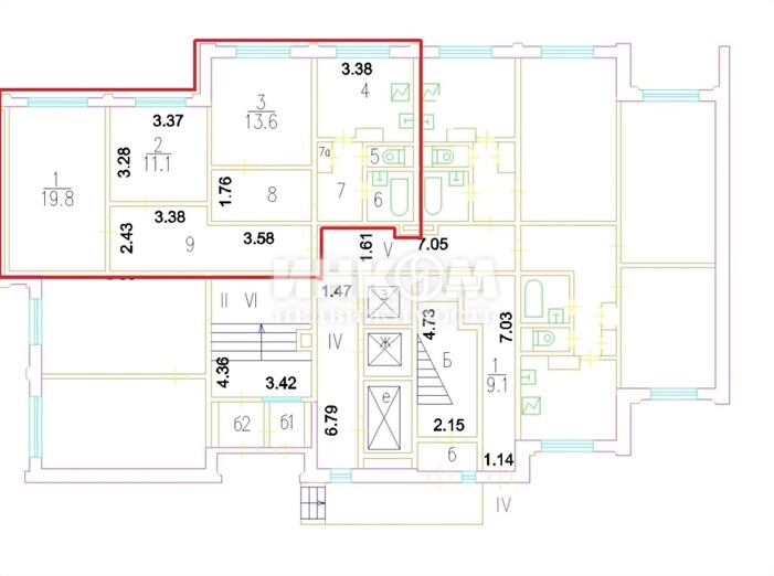 | – | обозначение изолированных комнат |
