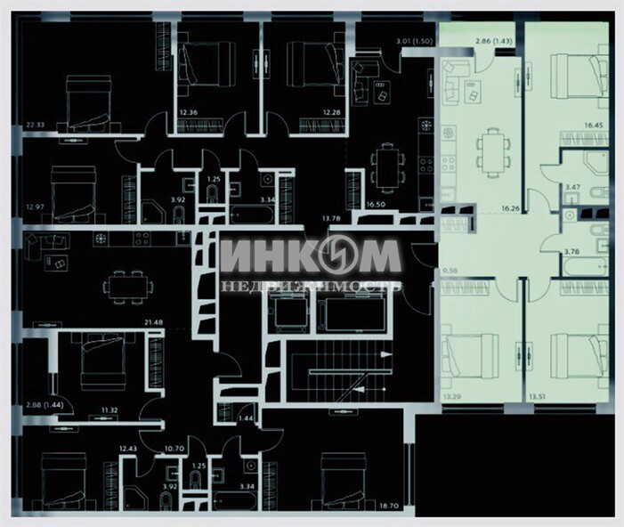 Жилая 43.3 м2