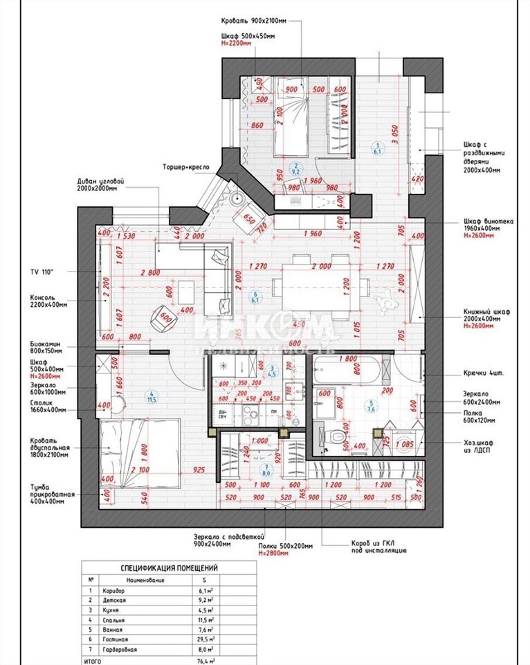 + обозначение смежных комнат