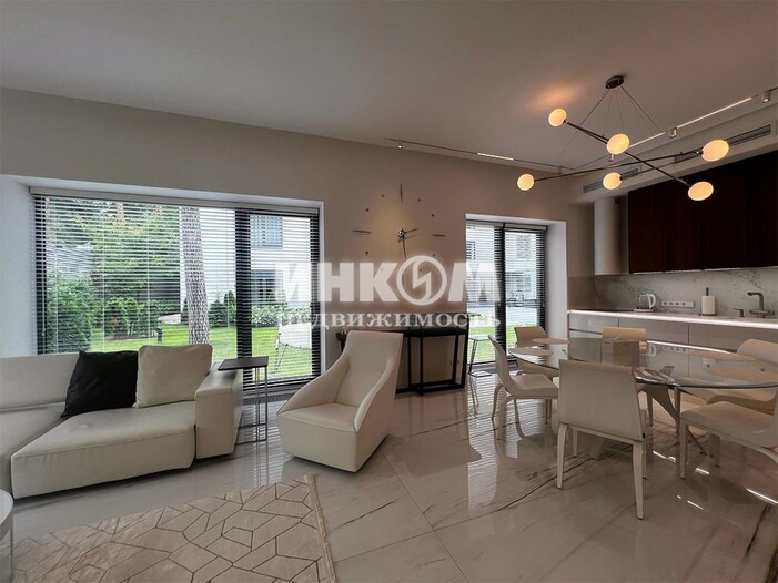 Номер лота: вт-0429203. Роскошная меблированная квартира с террасой в малоэтажном элитном жилом комплексе. Идеальное сочетание близости к мегаполису и инфраструктуре Рублёвки с экологией, приватностью и уединённостью, необходимой для полноценного отдыха. Квартира полностью готова для комфортного проживания, выполнен дорогостоящий ремонт. Квартира полностью готова для комфортного проживания, выполнен дорогостоящий ремонт, усиленная звукоизоляция, подогрев полов во всей квартире, централизованная приточно-вытяжная вентиляция, система умный дом, климат контроль. Вся техника, корпусная и мягкая мебель от известных премиальных производителей. Удивительное сочетание стиля и функционального удобства. Авторский проект. Высокое качество реализации. Общая площадь квартиры, без учета террасы - 114,7 кв.м. - Прихожая 8 кв.м.; - Просторная гостиная 49.3 кв.м, совмещенная с кухней-столовой, с выходом на террасу; - Мастер спальня 17.1 кв.м. со своей гардеробной и просторной душевой комнатой; - Вторая спальня 15.3 кв.м. с гардеробной системой; - Гостевой санузел со своей душевой зоной. Закрытая территория с круглосуточной охраной, въезд осуществляется строго по пропускам ЖК расположен в непосредственной близости от семейных парков Раздолье и Малевича, гимназии Примакова. Отличная транспортная доступность, всего 6 км от МКАД По Рублево-Успенскому шоссе, а общественным транспортом можно добраться до станции метро "Крылатское" всего за 20 минут. Также имеются два удобных соседних машиноместа 14.3 и 14.7 кв.м. (-3 этаж) и две кладовые комнаты 18.7 и 12.3 кв.м. (-1 этаж) Первичные документы, свободная продажа. Оперативный показ, быстрый выход на сделку.