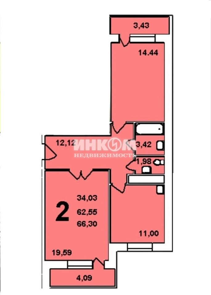 Общая 63.4 м2
