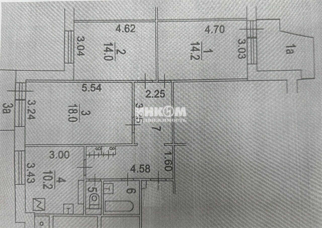 Доля в 3-комнатной квартире, 16 этаж, 46.2 м2