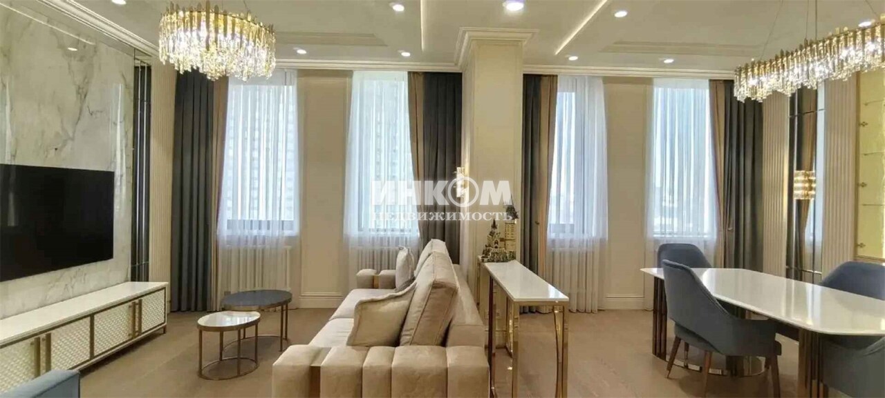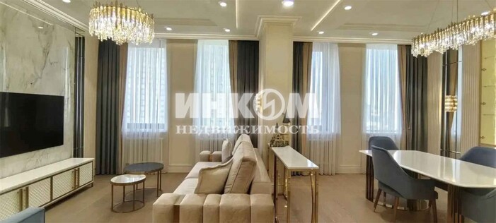 Номер лота: вт-0432341. Продаётся большая, светлая, просторная 3-комнатная квартира "евроформат" общей площадью 107,8 на 16 этаже, с большой кухней - гостиной и авторским дизайн-проектом от студии дизайна Натальи Преображенской "Уютная квартира", в стиле неоклассика. Из окон открываются панорамные виды на город,Москву-реку и двор. Функциональное планировочное решение: кухня-гостиная, мастер-спальня со своей ванной комнатой, вторая спальня, отдельная гардеробная, гостевой санузел с душевой кабиной, постирочная, прихожая с вместительными шкафами. Высота потолков 3 метра. Установлена приточно-вытяжная система вентиляции, кондиционер, система защиты от протечек Аквастоп. Квартира с мебелью и кухонным гарнитуром выполнены на заказ. Кухня оборудована встроенной техникой от европейского производителя (холодильник, морозильная камера, духовой шкаф, микроволновая печь, варочная панель, посудомоечная машина), столешница, фартук и обеденный стол из натурального камня. Стены покрыты краской, с элементами отделки из натурального гипса, керамогранита, зеркал, cюжетные обои ручной росписи фирмы Fresq. Покрытие пола инженерная доска. Гостевой и хозяйский санузлы отделаны широкоформатным керамогранитом, качественная европейская сантехника. Главное о доме. "Хедлайнер" - квартал с башнями разной высоты и зелёными дворами на стилобате. В лобби разместили зоны ожидания. Есть колясочная и подземный паркинг с прямым доступом в корпуса. Комплекс расположен в Пресненском районе со сложившейся инфраструктурой и богатым историческим наследием. В 15 минутах пешком от Москва-Сити. В непосредственной близости: развитая инфраструктура, парковые пространства и живописная набережная Москвы-реки. Рядом доступны престижные школы ЦАО, ТРЦ Афимолл Сити, ТРЦ Филион, ТРЦ Европейский, Экспоцентр, ММДЦ Москва-Сити, фитнес-клубы. Отличная транспортная доступность: до станции метро "Шелепиха" - всего 3 минуты пешком; быстрый выезд на ТТК, Краснопресненскую набережную, Кутузовский проспект и Большую Филевскую улицу.