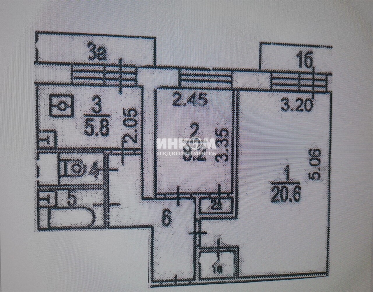 Доля в 2-комнатной квартире, 3 этаж, 29 м2