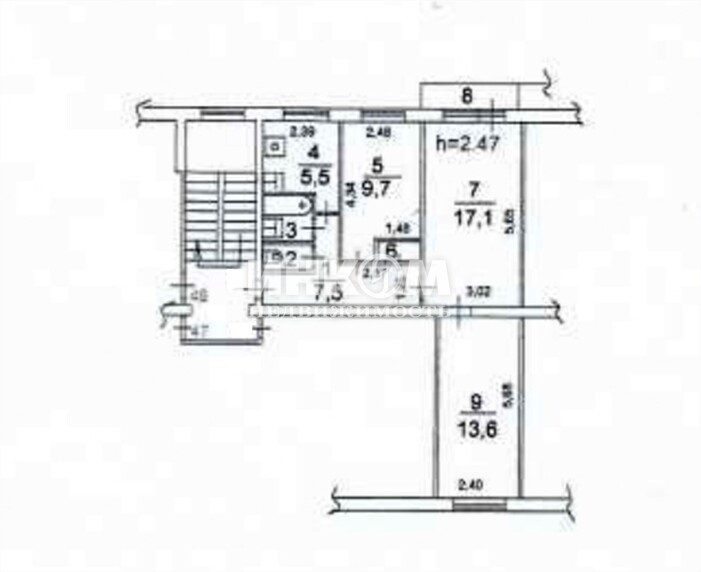 Продажа 3-комнатной квартиры, 58 м², этаж 2/5