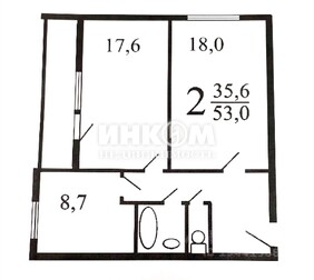 2-комнатная квартира, 37.7 м², этаж 2/12