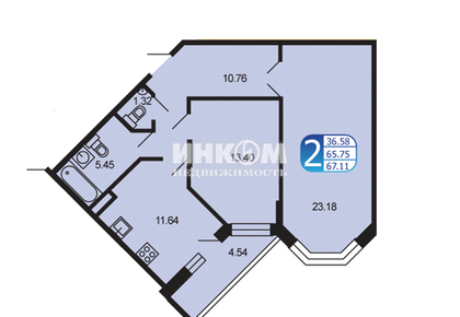 2-комнатная квартира, 67.5 м², этаж 5/9