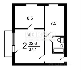 2-комнатная квартира, 39 м², этаж 3/9