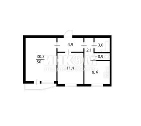 2-комнатная квартира, 50 м², этаж 8/9