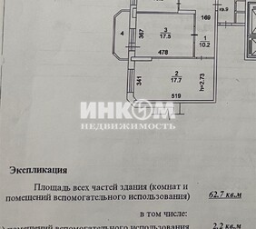 2-комнатная квартира, 60.5 м², этаж 3/17