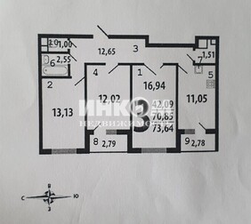 3-комнатная квартира, 71.6 м², этаж 6/13