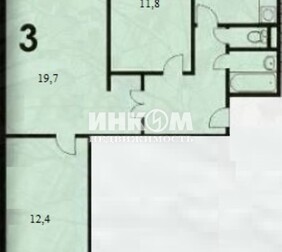 Доля в 3-комнатной квартире, 65.1 м², этаж 15/16