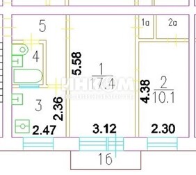 2-комнатная квартира, 43.2 м², этаж 5/5