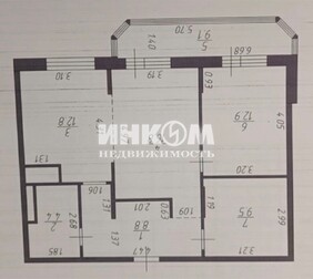 3-комнатная квартира, 59 м², этаж 2/9