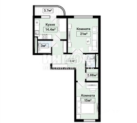 Уютная однокомнатная квартира с большой кухней-гостинной и спа...