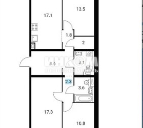 3-комнатная квартира, 79.1 м², этаж 2/14