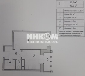 1-комнатная квартира, 32.9 м², этаж 8/9