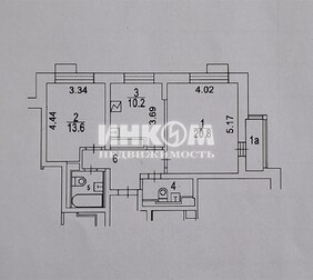 Доля в 2-комнатной квартире, 52.3 м², этаж 1/14