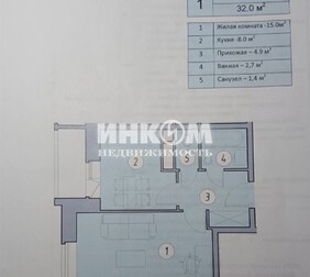 1-комнатная квартира, 32.9 м², этаж 6/9