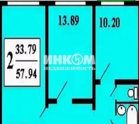 2-комнатная квартира, 58 м², этаж 3/22