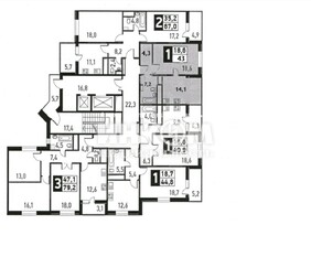 1-комнатная квартира, 42.1 м², этаж 18/23