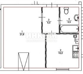 1-комнатная квартира, 40.3 м², этаж 3/3
